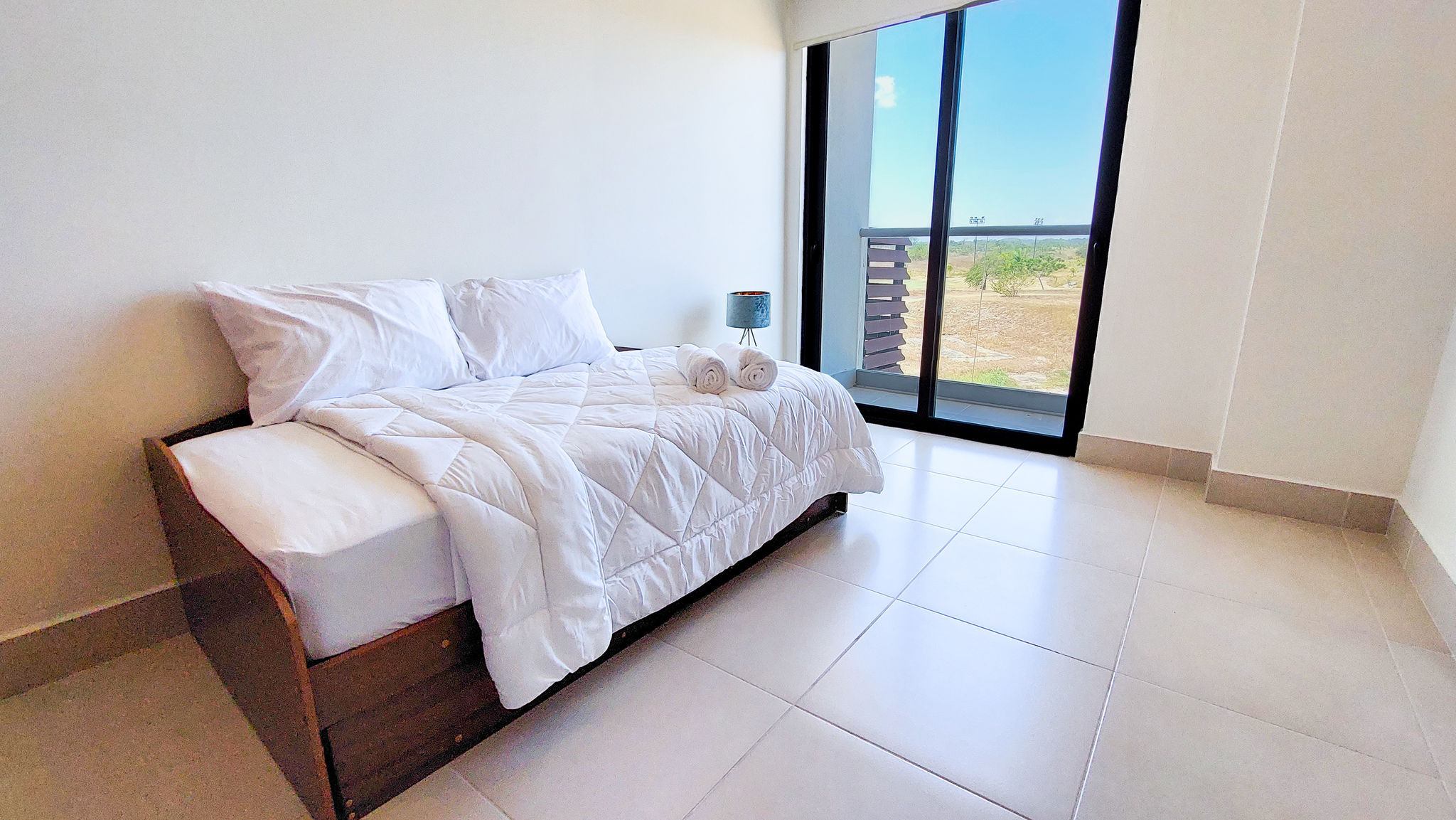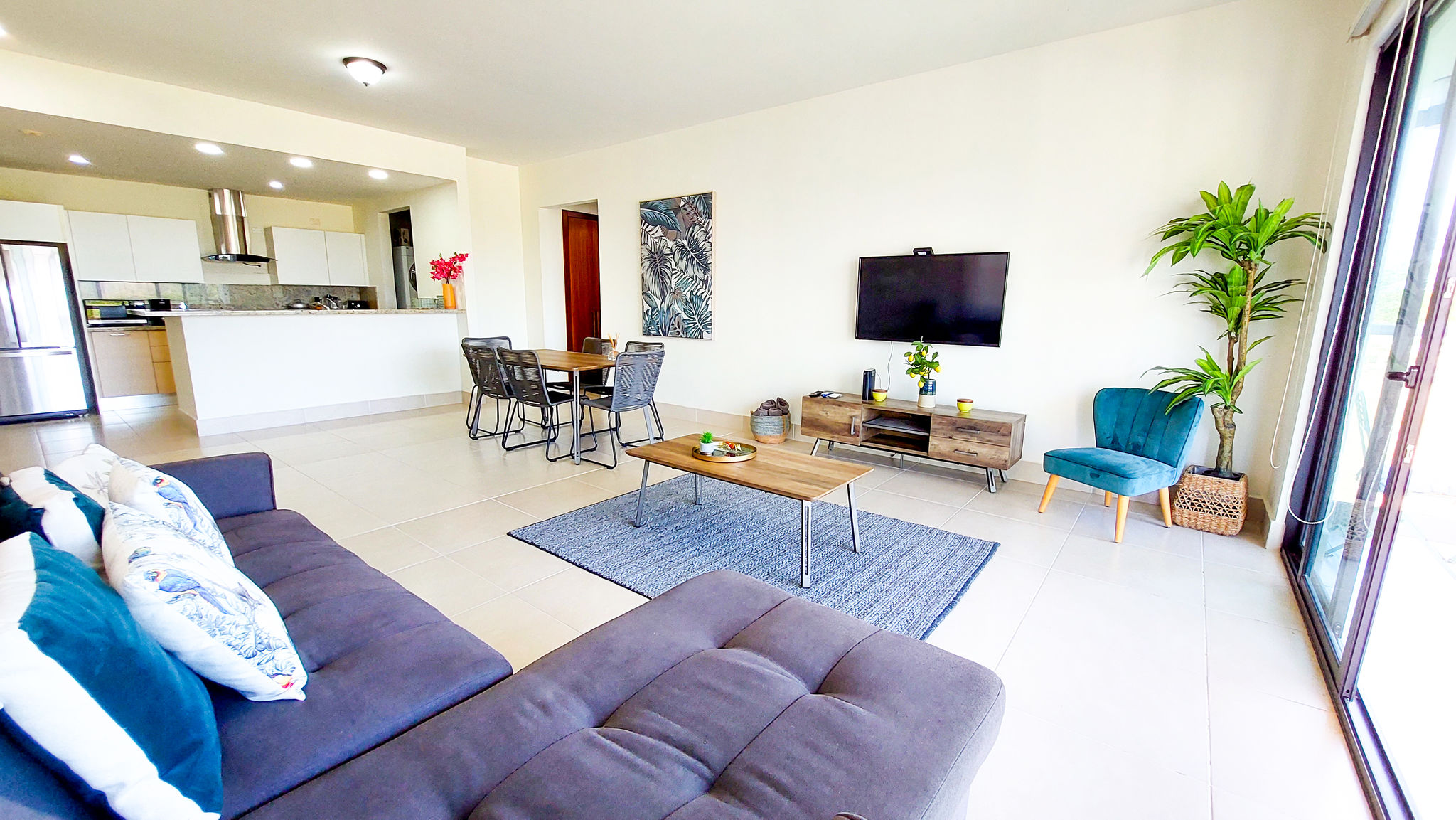 Floor-to-ceiling sliding glass doors for natural light